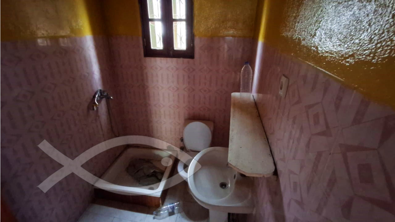 Na parte de trás da casa, um pequeno pátio leva a um edifício anexo que inclui uma cozinha, uma casa de banho e três quartos.