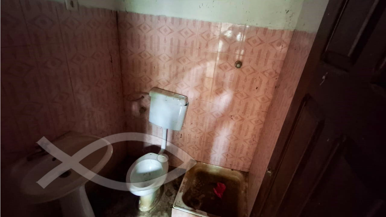 A casa é composta por uma sala de estar, uma cozinha, uma casa de banho comum para dois quartos, e um quarto principal com closet e casa de banho privativa.